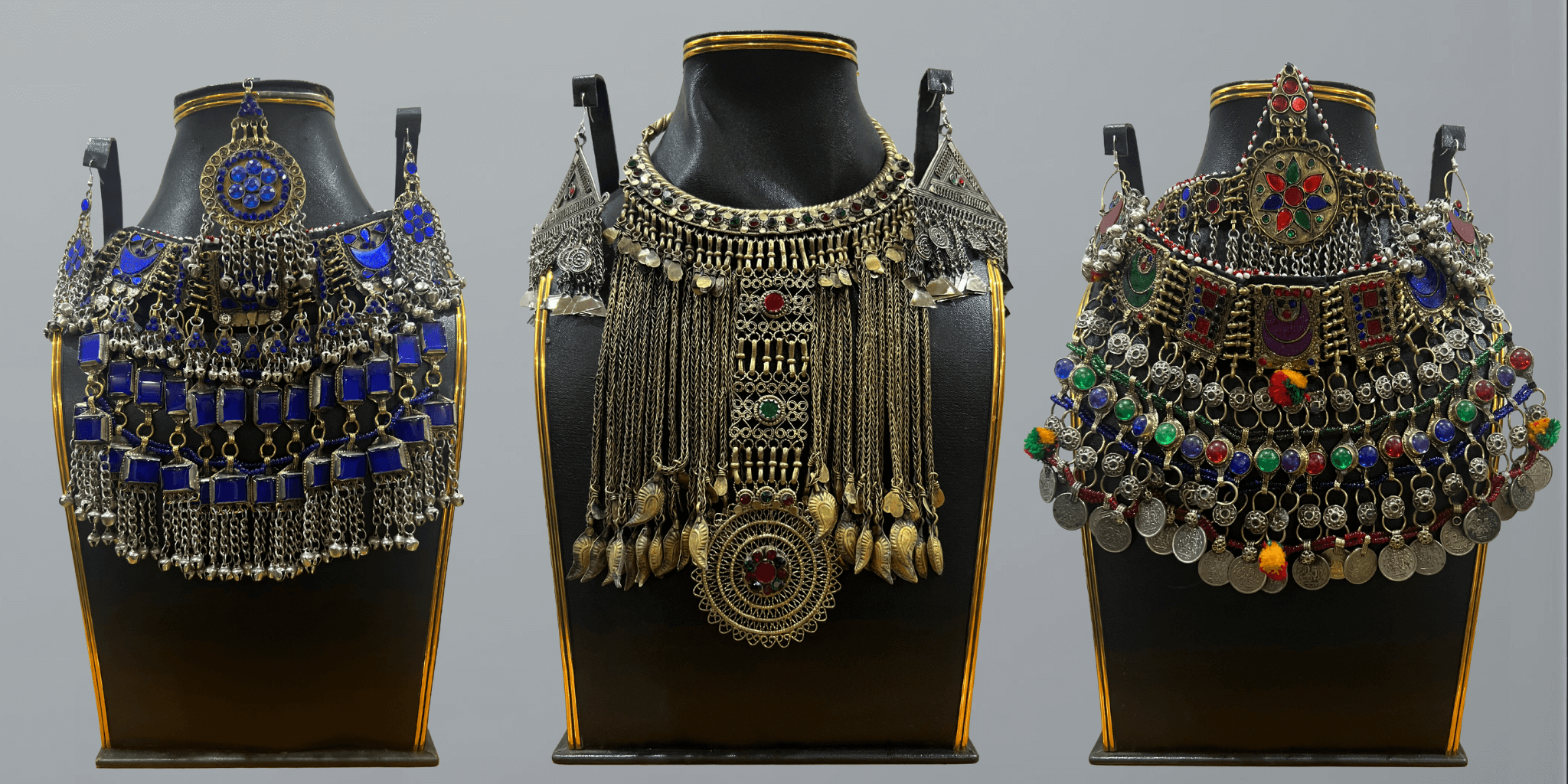Elevate your style with this stunning handcrafted Afghan choker, adorned with deep blue stones, intricate silver detailing, and cascading chains. A timeless piece of heritage jewelry that beautifully blends tradition with elegance.